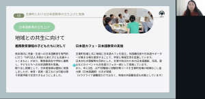 Home › R7フォローアップ研修(報告2①) R7フォローアップ研修(報告2①) 2025年12月28日 | Posted in | | Comments Closed 関連記事 令和7年度「地域日本語教育コーディネーター研修」地域日本語教育コーディネーターコース 冬期研修 2025年度地域日本語教育の総合的な体制づくり推進のためのコーディネーターコース 冬期研修が終わりました R7地域日本語教育コーディネーター研修 フォローアップ研修 第9回多文化社会実践研究フォーラムを開催しました TaSSKにほんごカフェを開催しました < R7地域日本語教育コーディネーター研修 フォローアップ研修